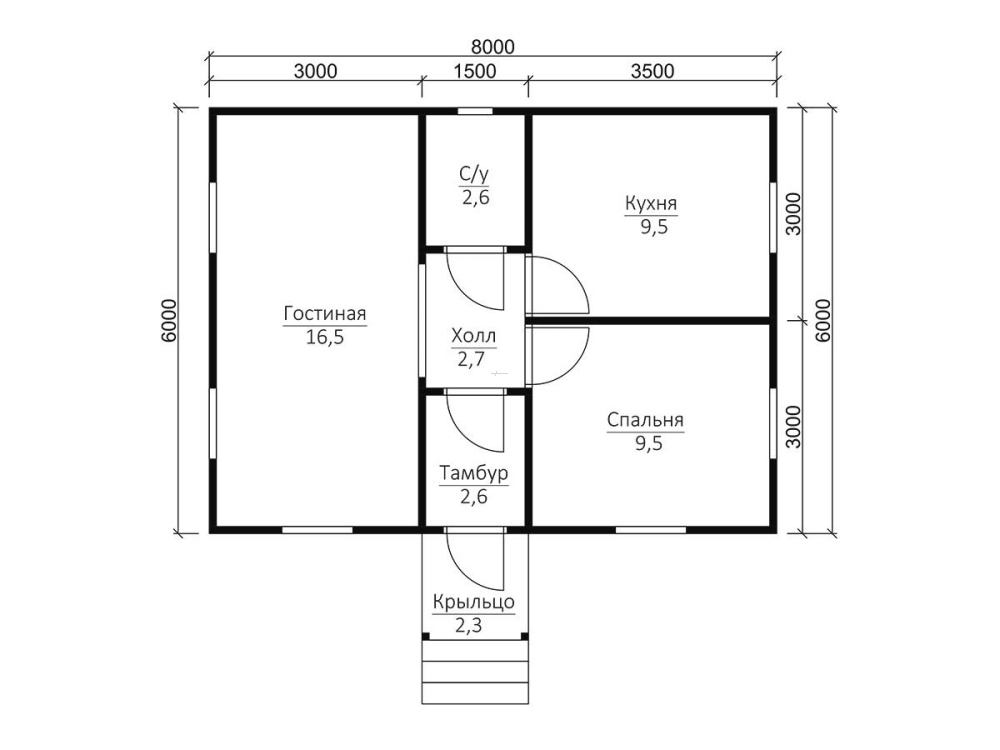 Сруб одноэтажный: 2,5 м. (18 венцов)