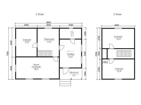 | Перегородки 2-го этажа | Каркасные: доска камерной сушки 40х100 мм, обшитые евровагонкой хвойных пород, камерной сушки, толщиной 12,5 мм. сорт «АВ» (дома с мансардой и в 1,5 этажа). Брусовые: профилированный брус камерной сушки, сечением 90х140 мм. (дома двухэтажные). | Каркасные: доска естественной влажности 40х100 мм. (дома с мансардой и в 1,5 этажа). Брусовые: профилированный брус естественной влажности, сечением 90х140 мм. (дома двухэтажные). |