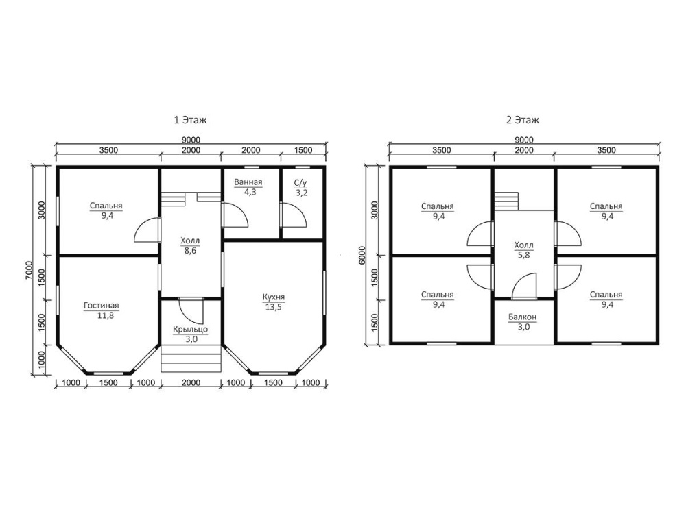 | Перегородки 2-го этажа | Каркасные: доска камерной сушки 40х100 мм, обшитые евровагонкой хвойных пород, камерной сушки, толщиной 12,5 мм. сорт «АВ» (дома с мансардой и в 1,5 этажа). Брусовые: профилированный брус камерной сушки, сечением 90х140 мм. (дома двухэтажные). | Каркасные: доска естественной влажности 40х100 мм. (дома с мансардой и в 1,5 этажа). Брусовые: профилированный брус естественной влажности, сечением 90х140 мм. (дома двухэтажные). |