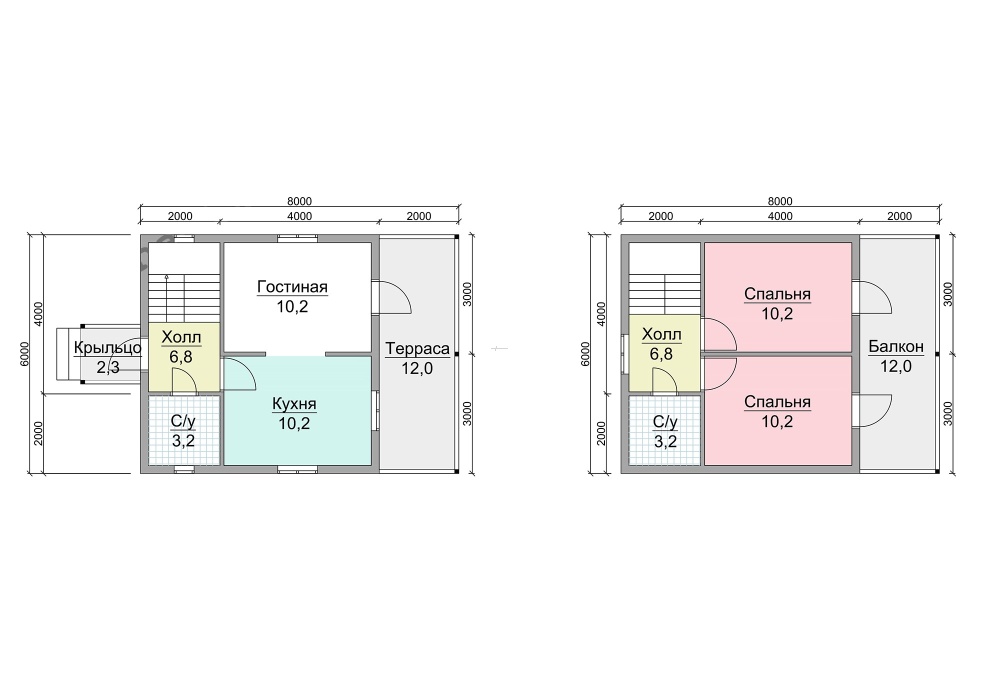| Под усадку (без отделки) | 6х8 | Cруб дома 190х140 мм | 1290700 | Заказать |
