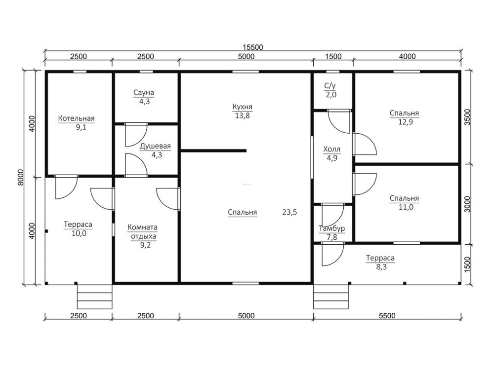 | Терраса/балкон (при наличии) | Устанавливаются опорные столбы из строганного бруса камерной сушки 140х140 мм. | |