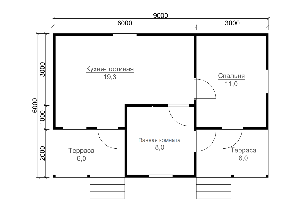 | Окна | Двухкамерные стеклопакеты ПВХ белого цвета, профиль 60 мм. В комплекте: отливы, подоконники, москитные сетки. | |
